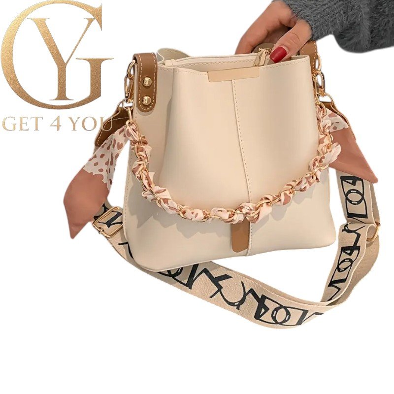 – Dvě ucha – krátký oplet do ruky + dlouhý textilní nastavitelný popruh přes rameno