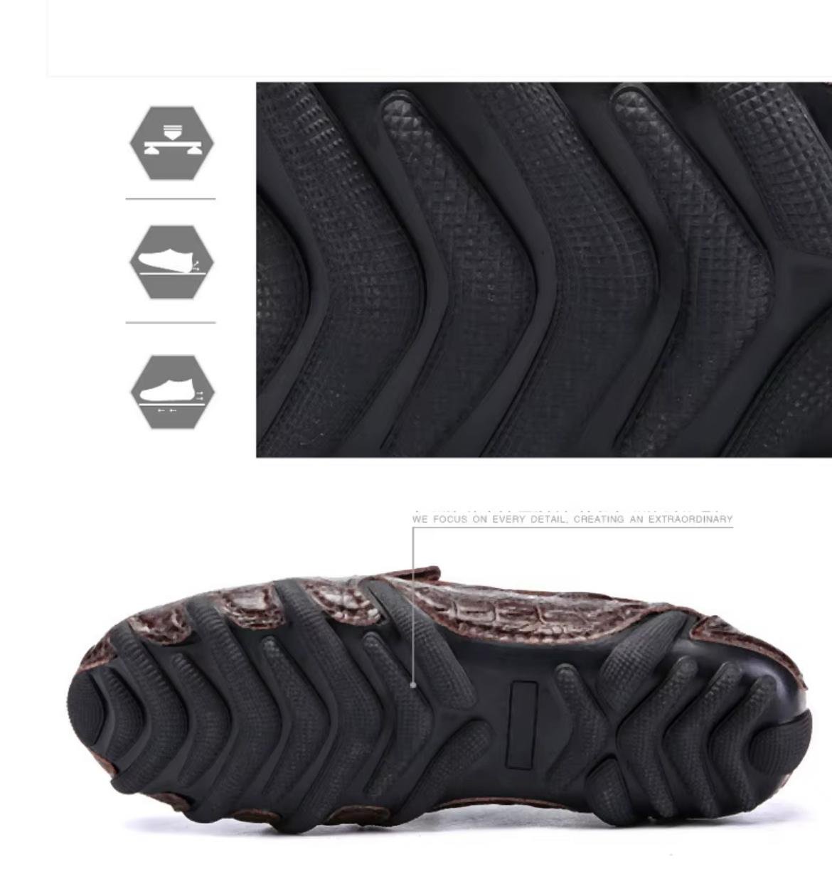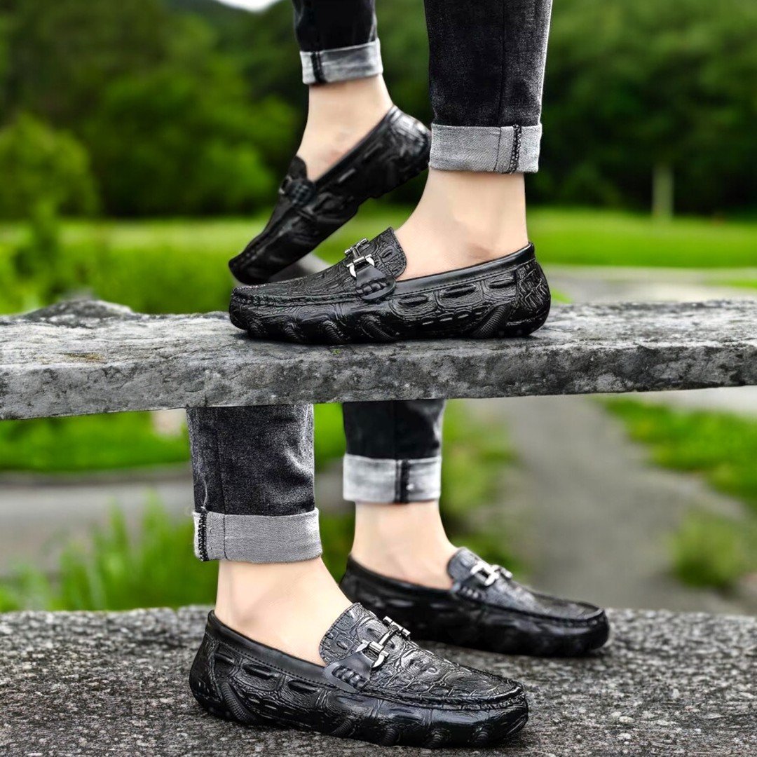 Představujeme elegantní pánské mokasíny, které v sobě spojují vytříbený styl, pohodlí a funkčnost. Tyto boty, vyrobené z vysoce kvalitní umělé kůže s reliéfním motivem imitujícím krokodýlí kůži, jsou dokonalou volbou pro moderního muže.