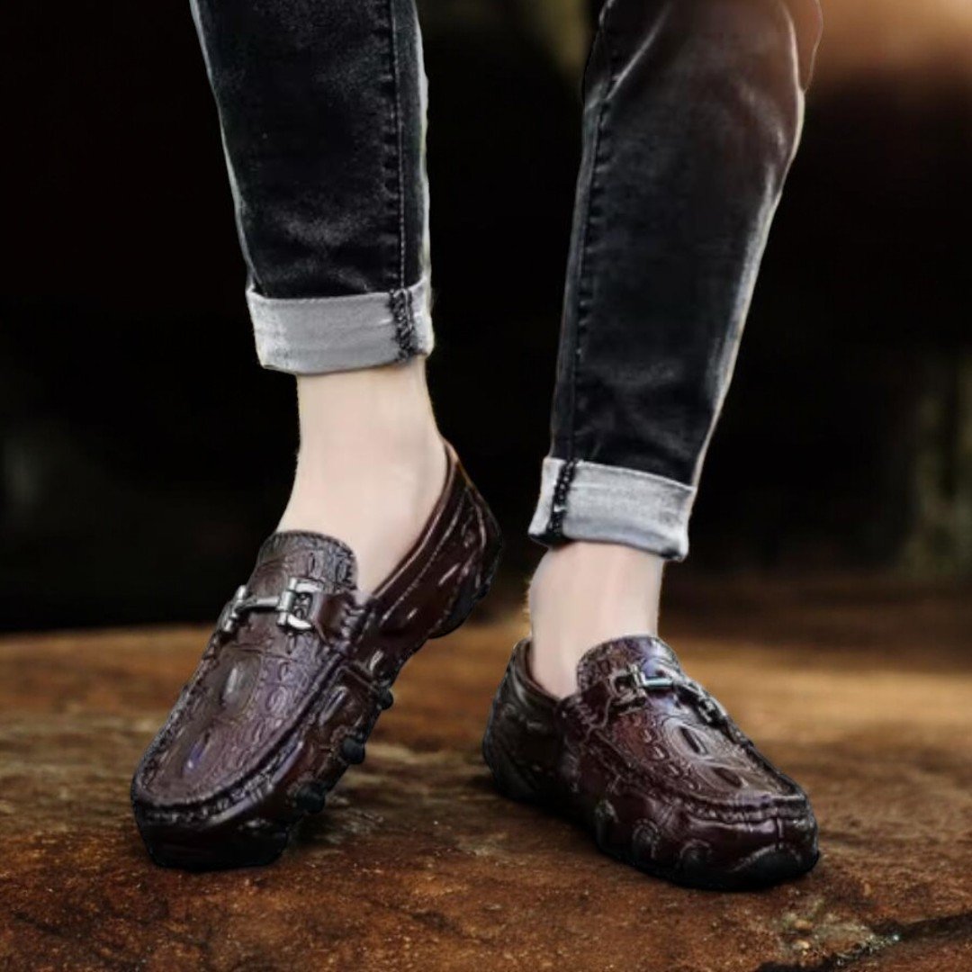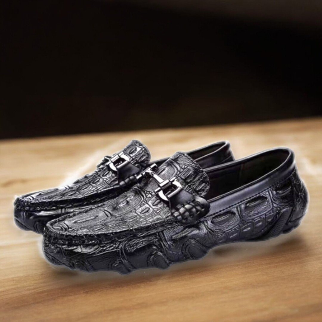 Luxusní pánské mokasíny s reliéfní kůží a pružnou podrážkou
