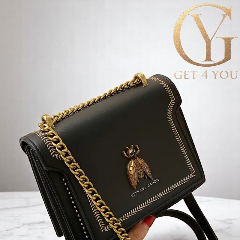Golden Beetle este o geantă care nu trece neobservată. Cu o insectă aurie iconică pe partea din față, lanț auriu și cusături decorative contrastante, acest model combină chic-ul modern cu o întorsătură artistică. Ideală pentru ocazii speciale, o ieșire în oraș sau ca accent pentru o ținută casual.