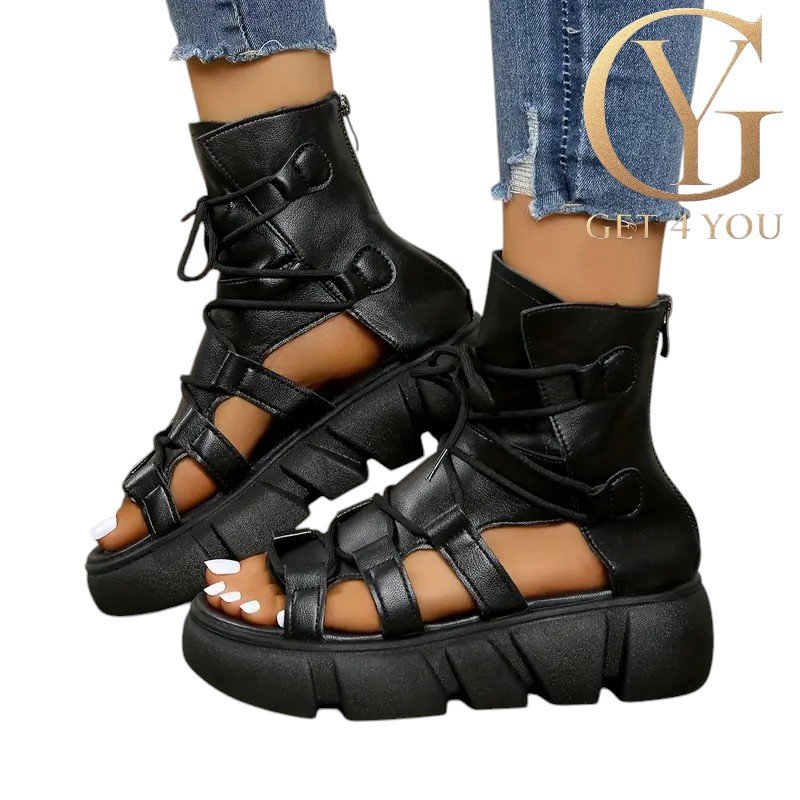Sandalele Rebel Soul sunt pentru femeia căreia îi place să facă o declarație de modă îndrăzneață. Un amestec de spirit rebel și eleganță urbană, acest model impresionează cu o platformă masivă, design din piele și șireturi care adaugă personalitate. Talpa este confortabilă și stabilă, iar silueta înaltă adaugă un accent expresiv oricărui look.